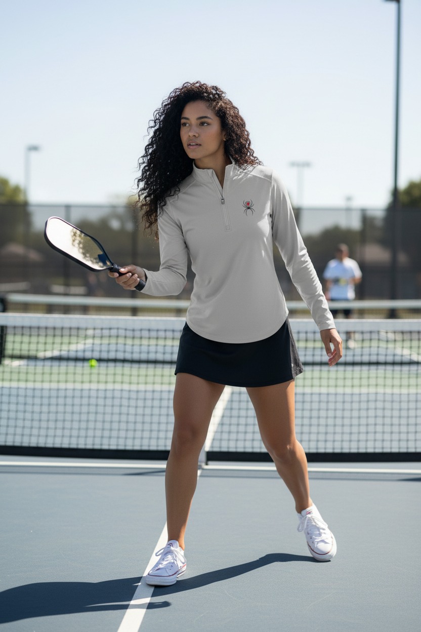 The 4-way stretch fabric moves seamlessly with every serve and volley, while the quarter-zip design allows for instant ventilation control. Enhanced shoulder construction provides optimal mobility for powerful overhead shots.