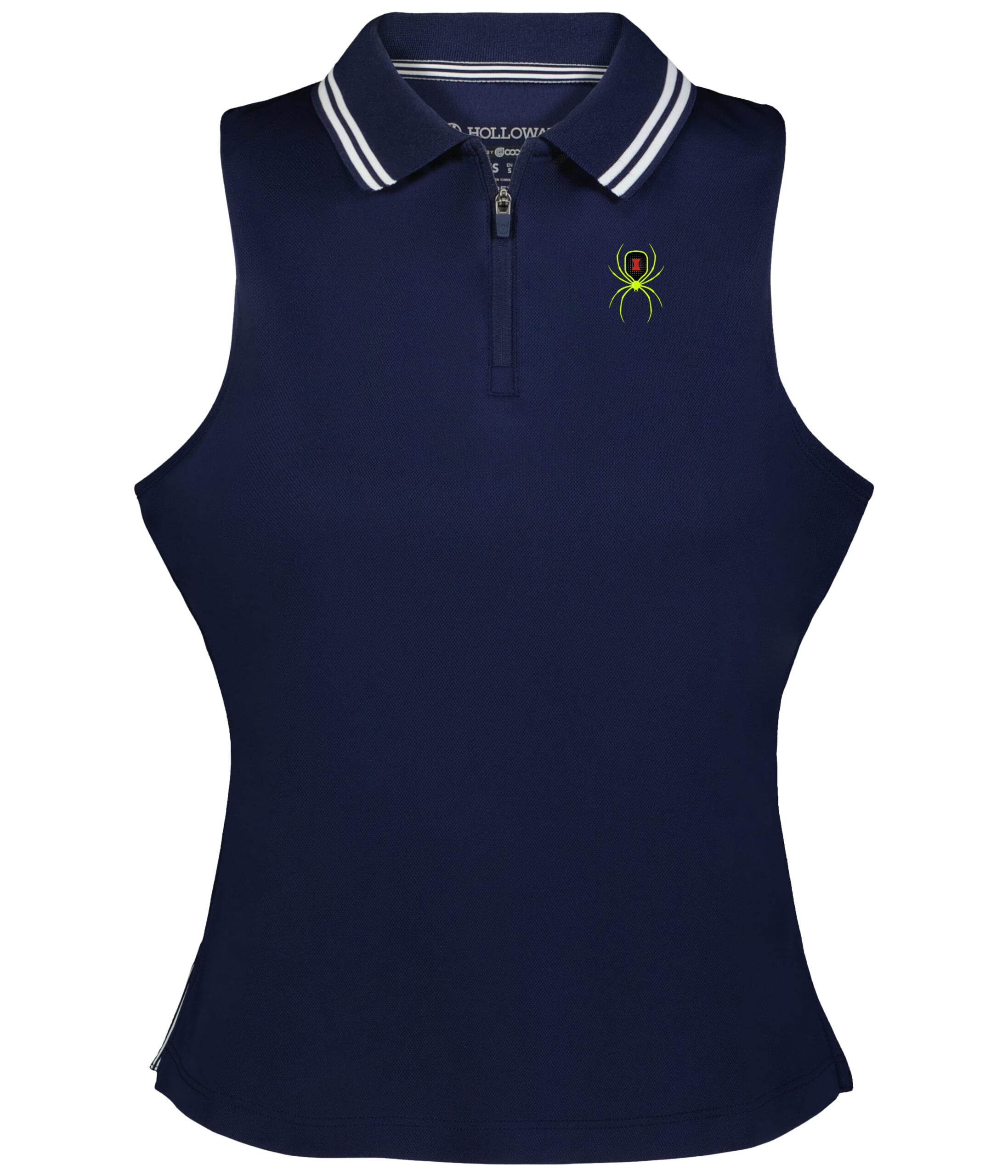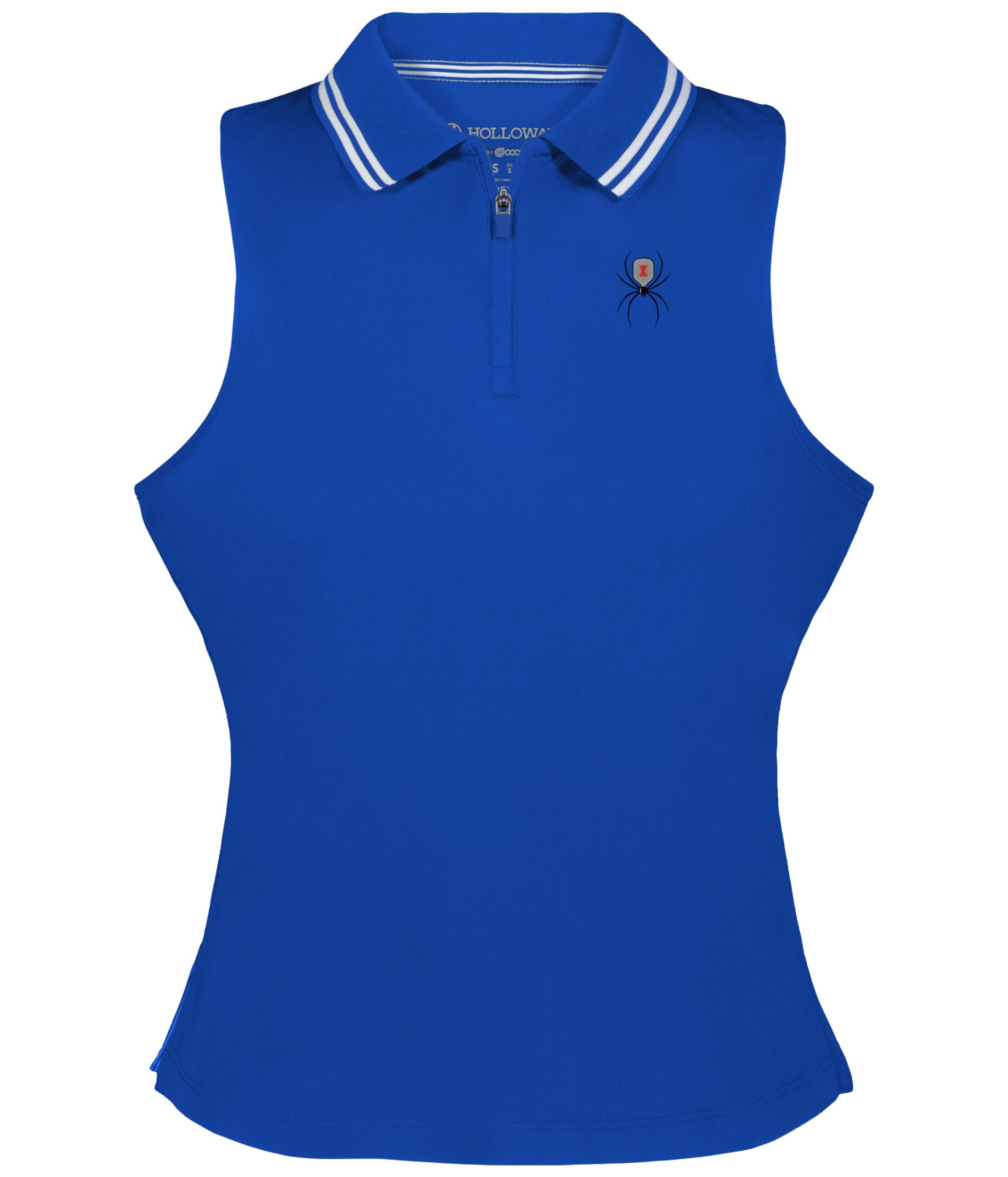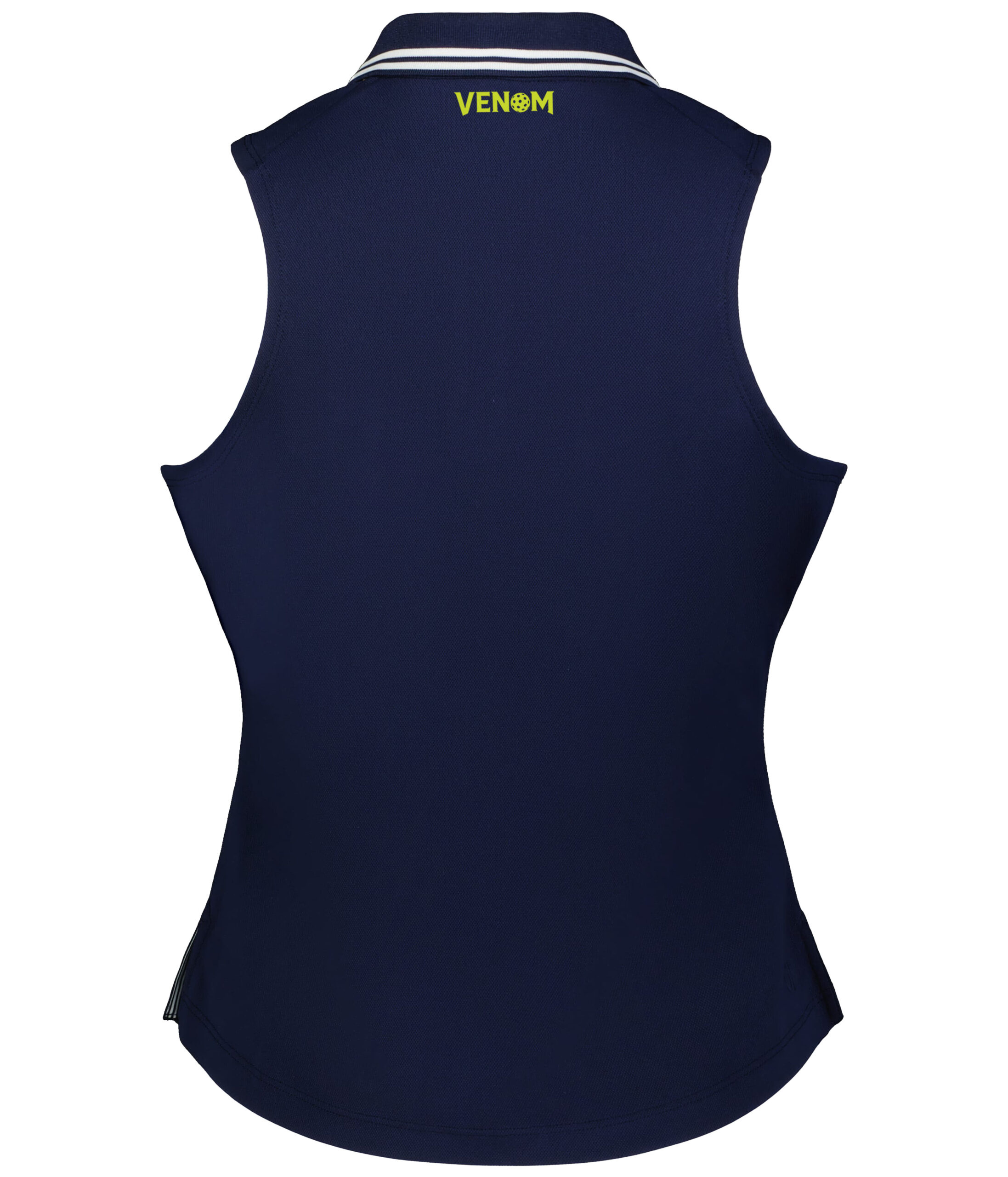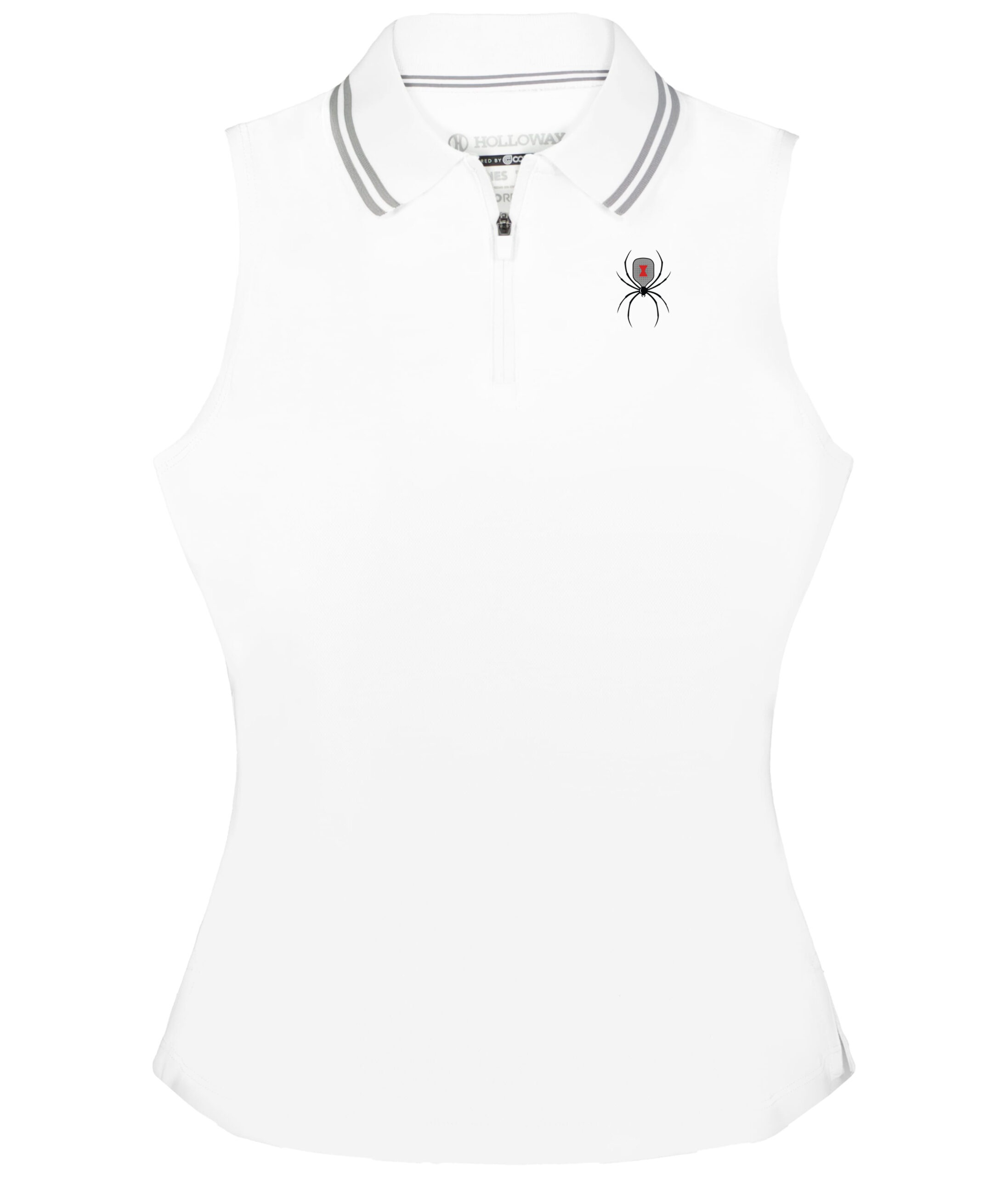The modified racerback styling provides unrestricted shoulder movement for powerful serves, while the classic rib-knit collar with striped accents maintains sophisticated court style. The zippered placket offers adjustable ventilation for optimal comfort.
