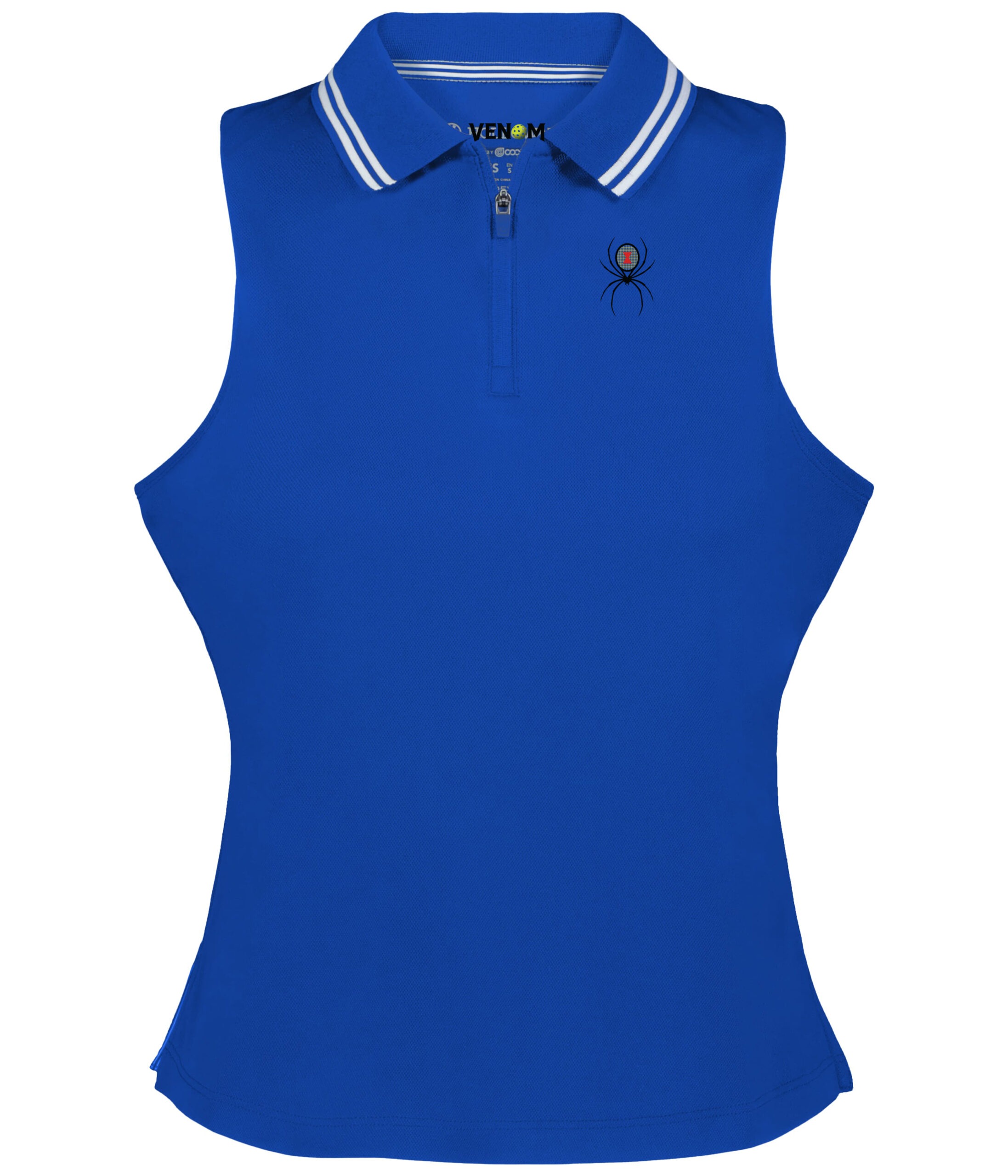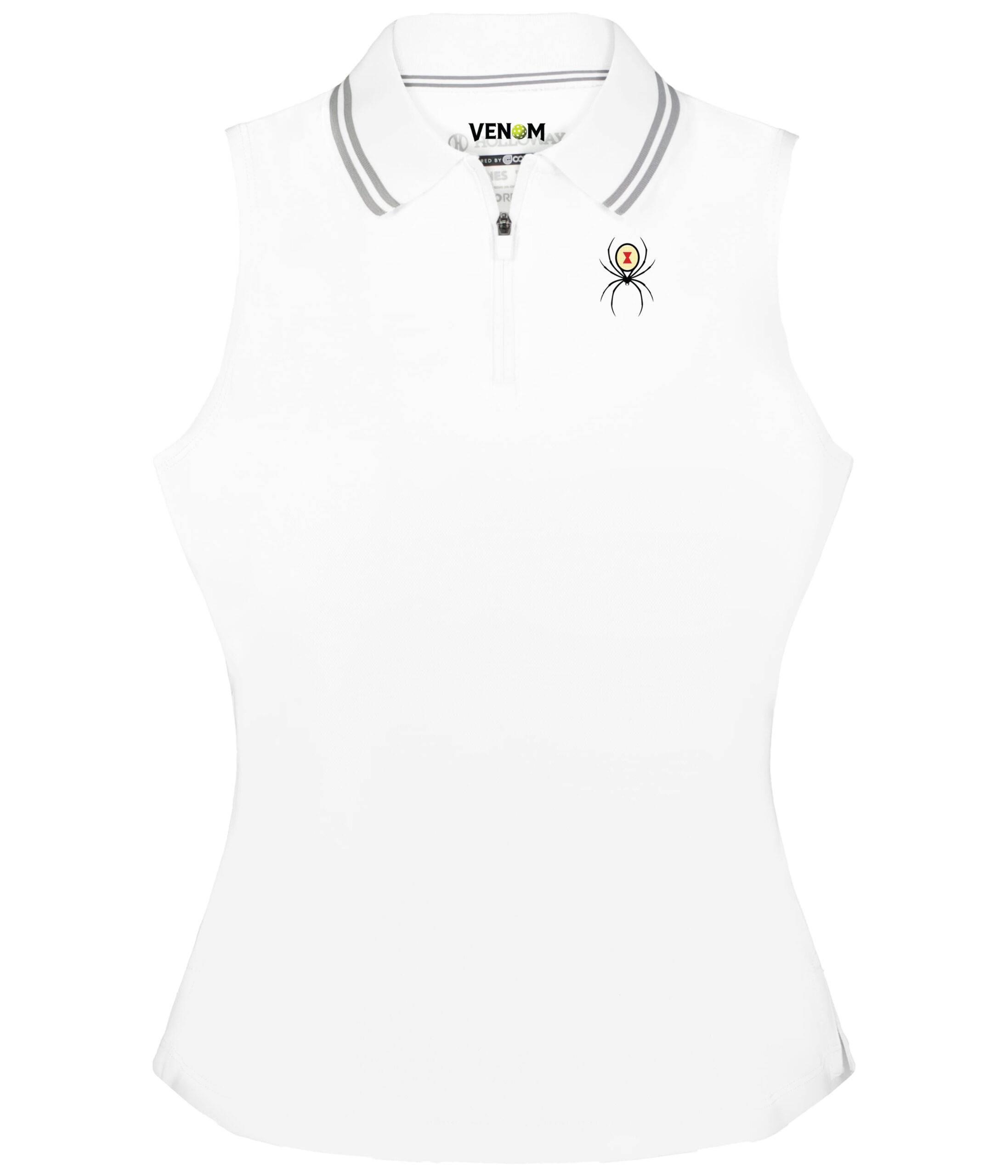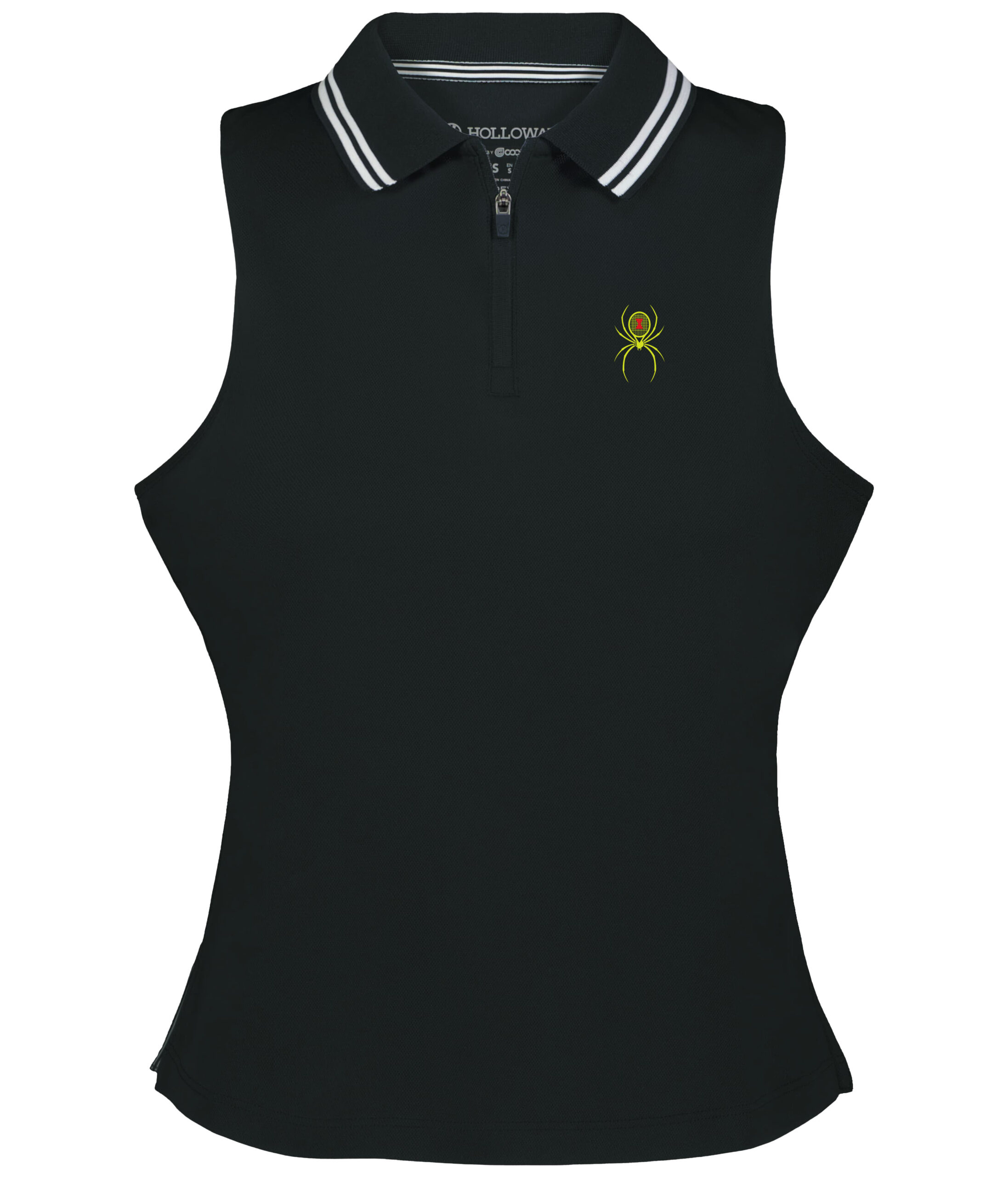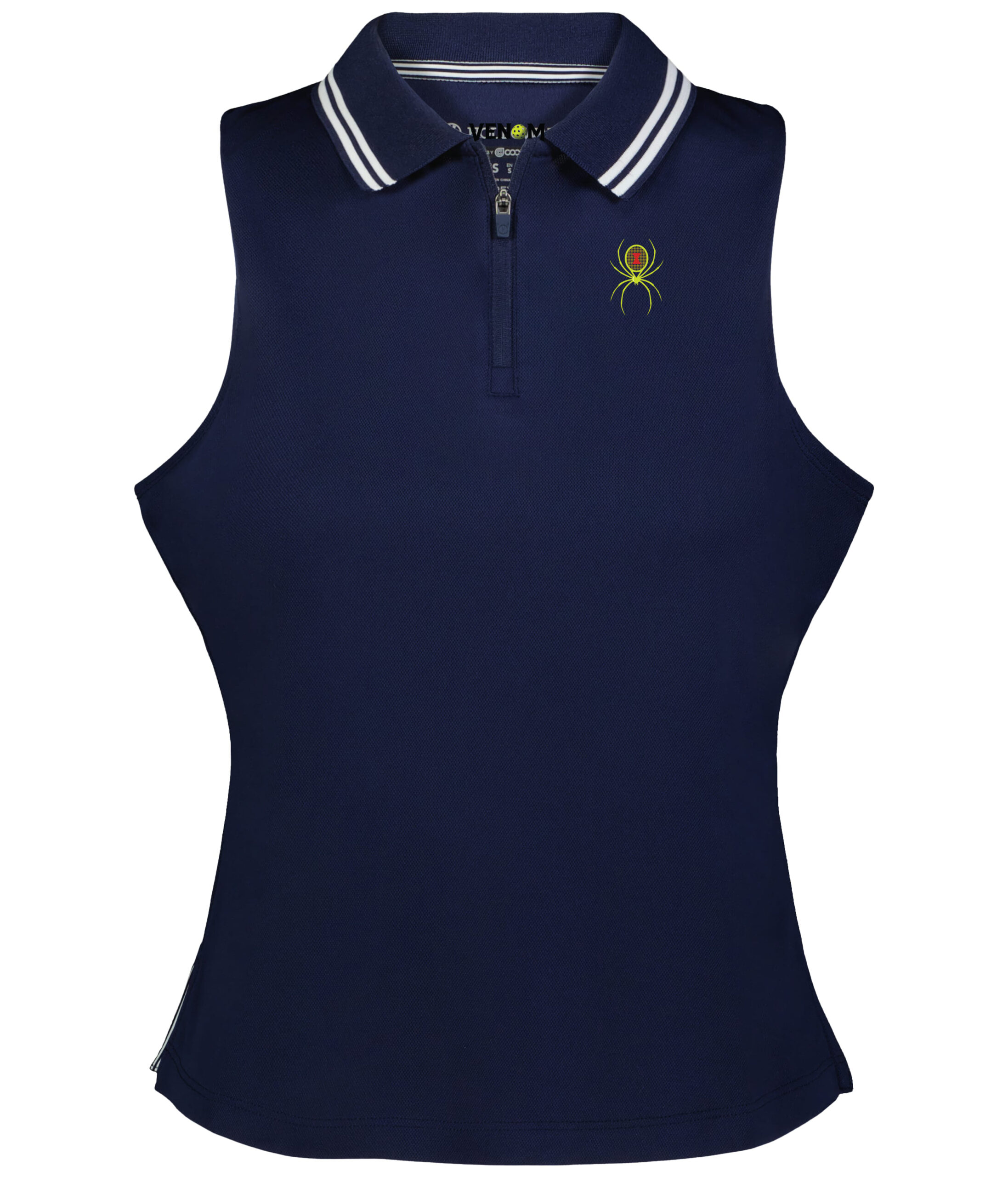 The modified racerback styling provides unrestricted shoulder movement for powerful serves, while the classic rib-knit collar with striped accents maintains sophisticated court style. The zippered placket offers adjustable ventilation for optimal comfort.